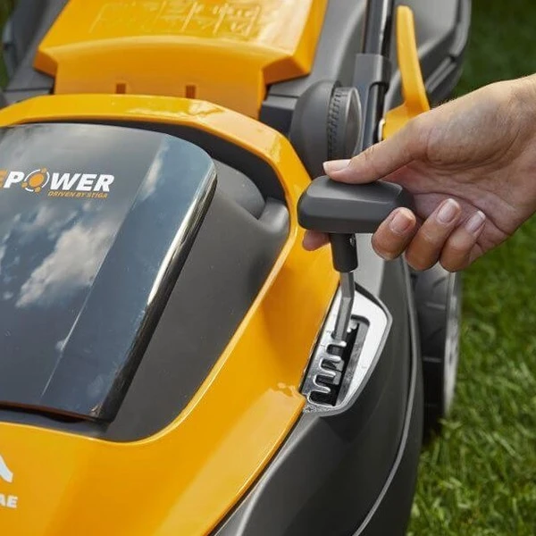 נוחות ללא כבלים. עד 250 מ"ר בטעינה אחת - תשכחו מכבלים סבוכים ומטווח מוגבל; שתי סוללות ה-ePower המתקדמות והמטען הכפול המצורפים למכסחת, פותחו ונבדקו באיטליה על ידי סטיגה, ומאפשרים לכם עבודה ארוכה ללא צורך בטעינה., תיהנו מחוויית כיסוח נטולת מתח וכבלים המכסה עד 250 מ"ר בטעינה אחת.
