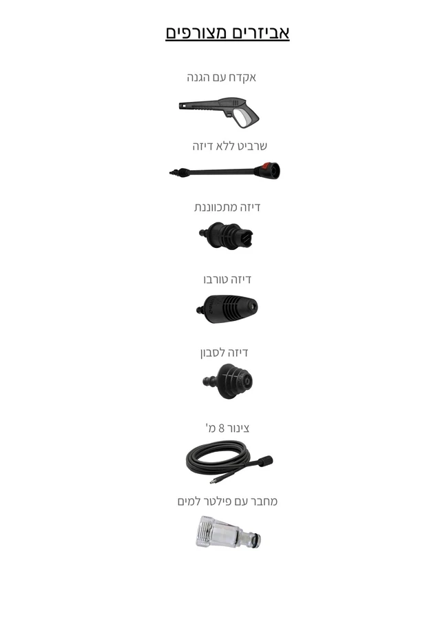 ניקוי רב תכליתי - חיבור המברשת הכלולה מאפשר לכם לנקות ללא מאמץ משטחים שונים, החל מחצרות, פטיו וחניות ועד ריהוט גן וכלי רכב, ומספק לכם פתרון ניקוי חיצוני מקיף.